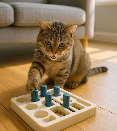 바쁜 일상 속에서도 고양이의 두뇌를 자극할 수 있는 놀이는 그리 복잡하지 않습니다. 오히려 간단하면서도 고양이 스스로 탐색하고 움직일 수 있는 환경을 만드는 것이 더 중요합니다. 아래는 집에서 쉽게 할 수 있는 뇌자극 놀이 5가지입니다. 첫째, 간식 퍼즐 장난감을 활용하세요. 고양이가 발로 굴리거나 문을 열어야 간식이 나오는 구조는 집중력과 문제 해결 능력을 함께 요구합니다. 시중에 다양한 제품이 있으며, 종이컵이나 빈 티슈곽으로 DIY도 가능합니다. 둘째, 종이상자 미로 만들기. 상자 여러 개를 연결해 길을 만들고, 중간에 간식을 숨겨보세요. 고양이는 호기심과 후각을 활용해 길을 찾는 데 몰입합니다. 셋째, 장난감 회전판. 고양이의 반사신경을 자극하는 전동 회전 장난감은 지루함을 없애주고, 사냥 본능도 충족시켜 줍니다. 단, 처음에는 낮은 속도에서 천천히 익숙해지도록 도와야 합니다. 넷째, 수건 속 간식 숨기기. 수건이나 얇은 담요 사이에 간식을 숨기고 찾게 하는 놀이는 후각, 촉각, 두뇌를 모두 사용하는 똑똑한 놀이입니다. 다섯째, 창밖 감시대 만들기. 고양이가 높은 곳에서 바깥세상을 관찰할 수 있게 해 주면, 환경 자극으로 인해 뇌 활동이 활발해지고 스트레스 해소에도 좋습니다. 이러한 놀이들은 단순한 활동을 넘어 고양이의 삶에 활력을 불어넣고, 보호자와의 교감도 더욱 풍부하게 만들어줍니다.