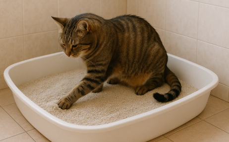 고양이 방광염의 초기 증상은 매우 미묘하고, 초보 집사들은 쉽게 지나칠 수 있습니다. 가장 흔한 초기 증상 중 하나는 화장실에서의 행동 변화입니다. 평소보다 화장실을 자주 들락거리는 모습, 소변을 보려는 자세만 취하고 배출하지 못하는 모습, 혹은 소변량이 현저히 줄어드는 모습 등이 나타납니다. 어떤 경우에는 바닥, 옷, 침대 등 평소 소변을 보지 않던 장소에 실수를 하기도 하며, 이때 집사는 단순한 배변 실수로 오해할 수 있습니다.